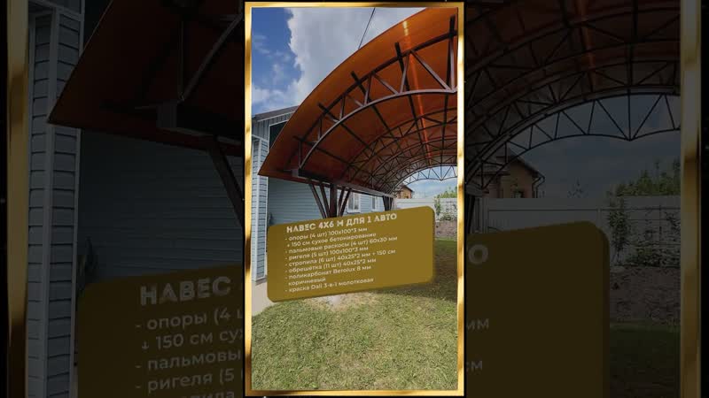 Задача компании – сделать надежный, функциональный и долговечный навес из поликарбоната по требованиям заказчика. Для этого разработана система изготовления, предусматривающая контроль материалов, каждого элемента конструкции, соблюдения технологии монтажа. Все это показано в видеоматериалах.